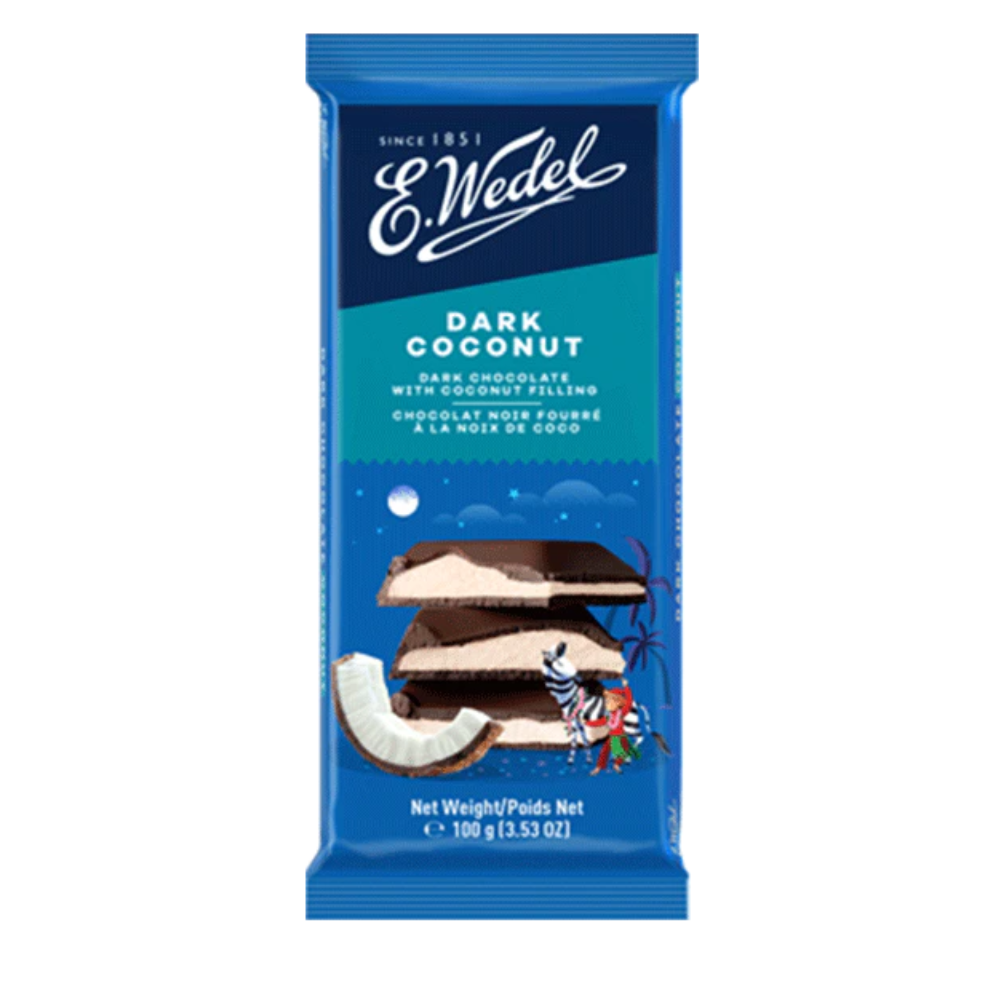 Wedel Dark Coconut Chocolate (Kokosowa) is a luxurious Polish chocolate bar that combines rich dark chocolate with a smooth, creamy coconut filling. The bold cocoa flavor perfectly complements the sweet tropical notes, creating a refined and indulgent treat.