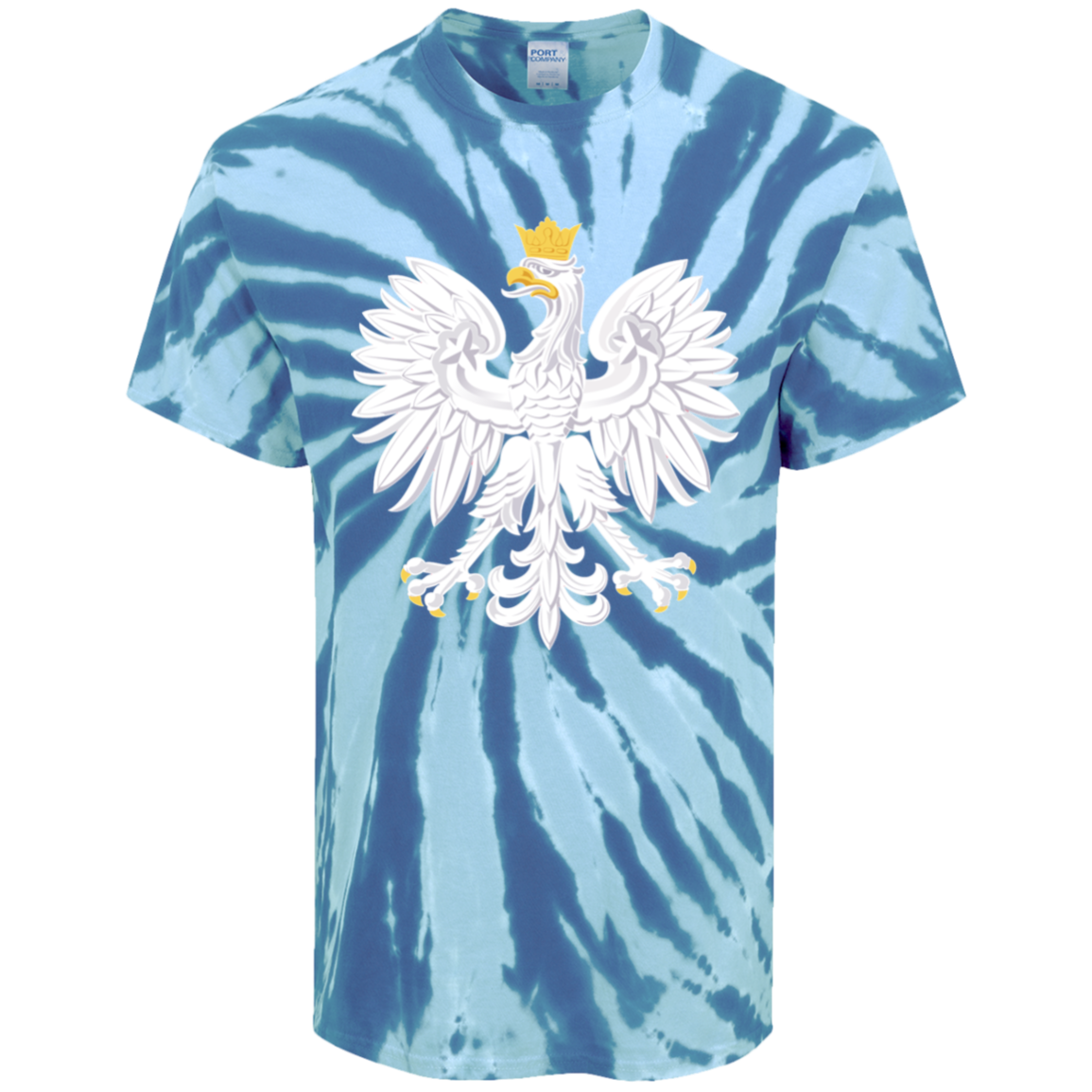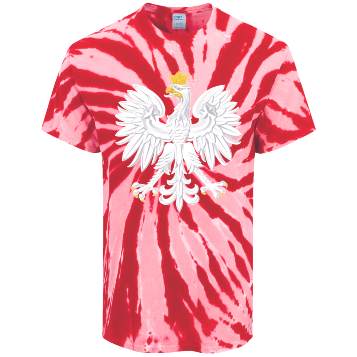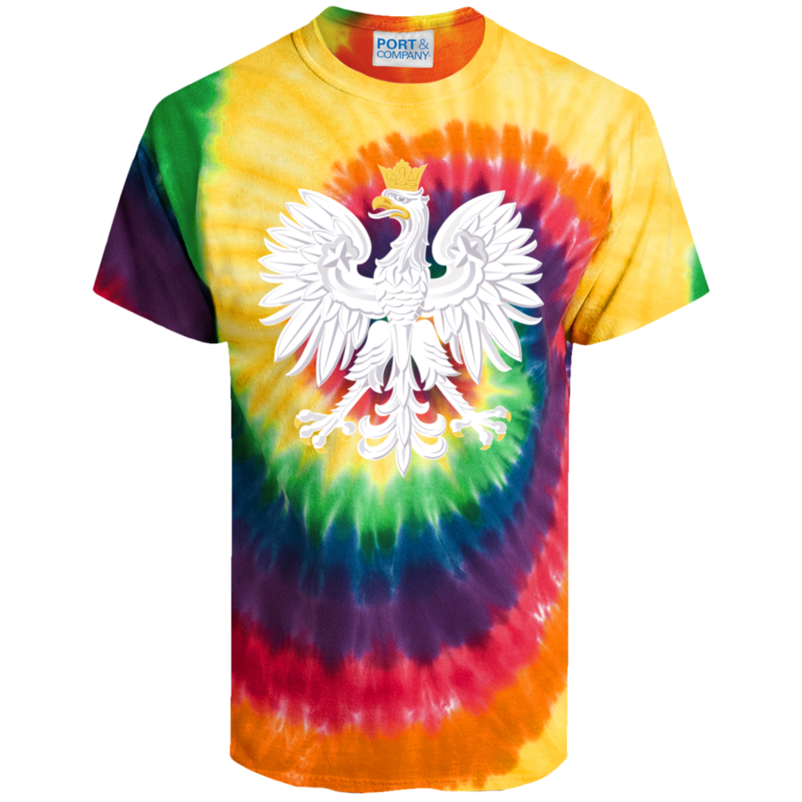 Add a splash of fun and patriotism to your wardrobe with the Polish Eagle Tie-Dye Tee. Featuring a vibrant tie-dye pattern that catches the eye, this tee proudly displays the iconic Polish Eagle emblem. Perfect for casual days or festive gatherings, it blends comfort with a playful nod to heritage. Let your style soar with this unique and spirited shirt!