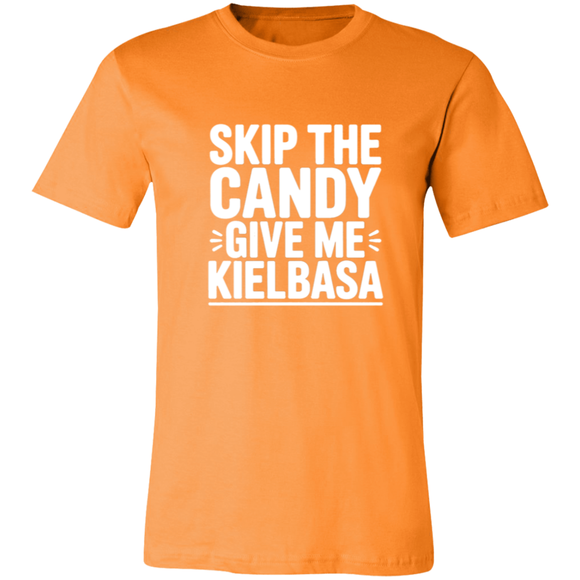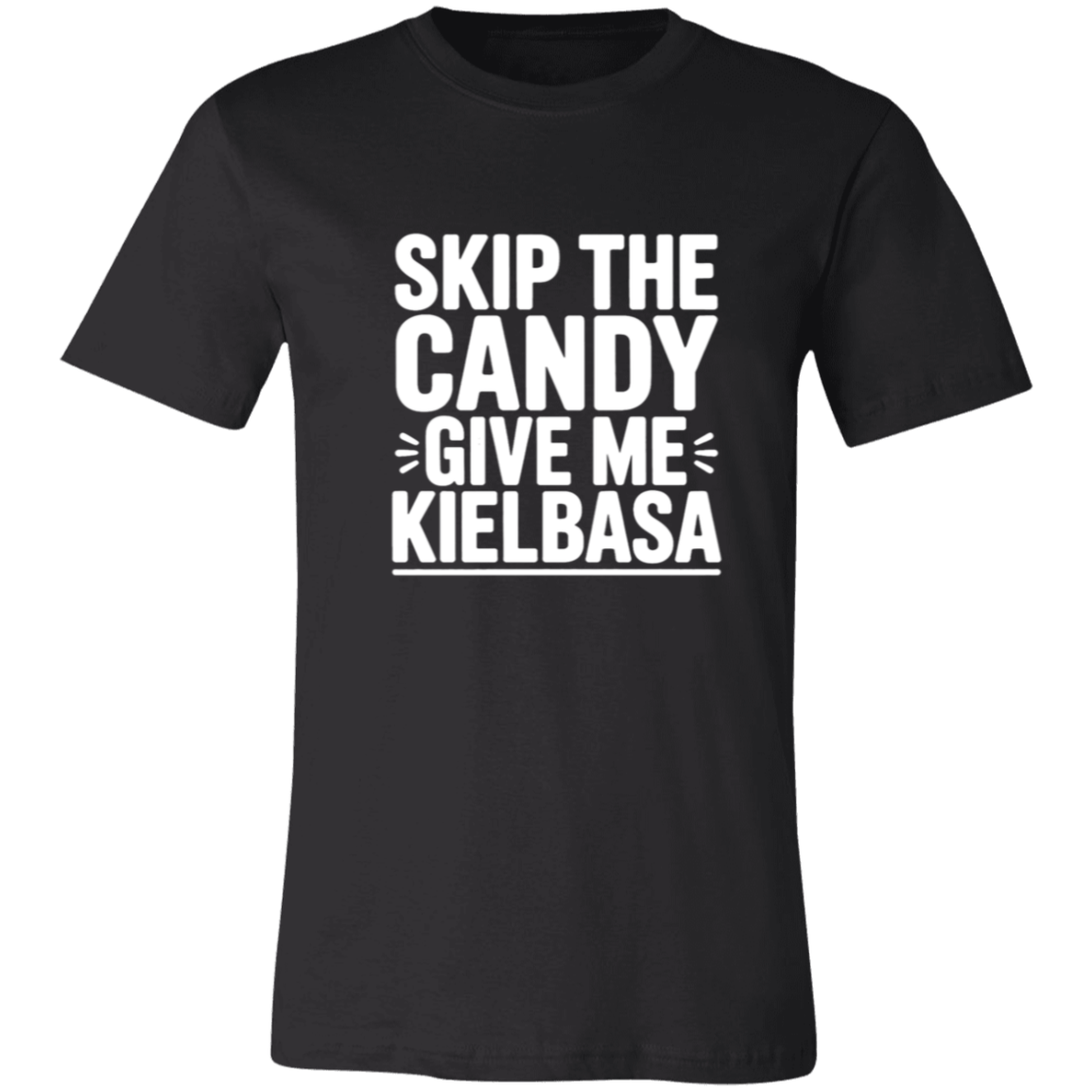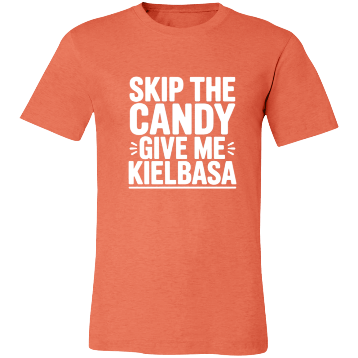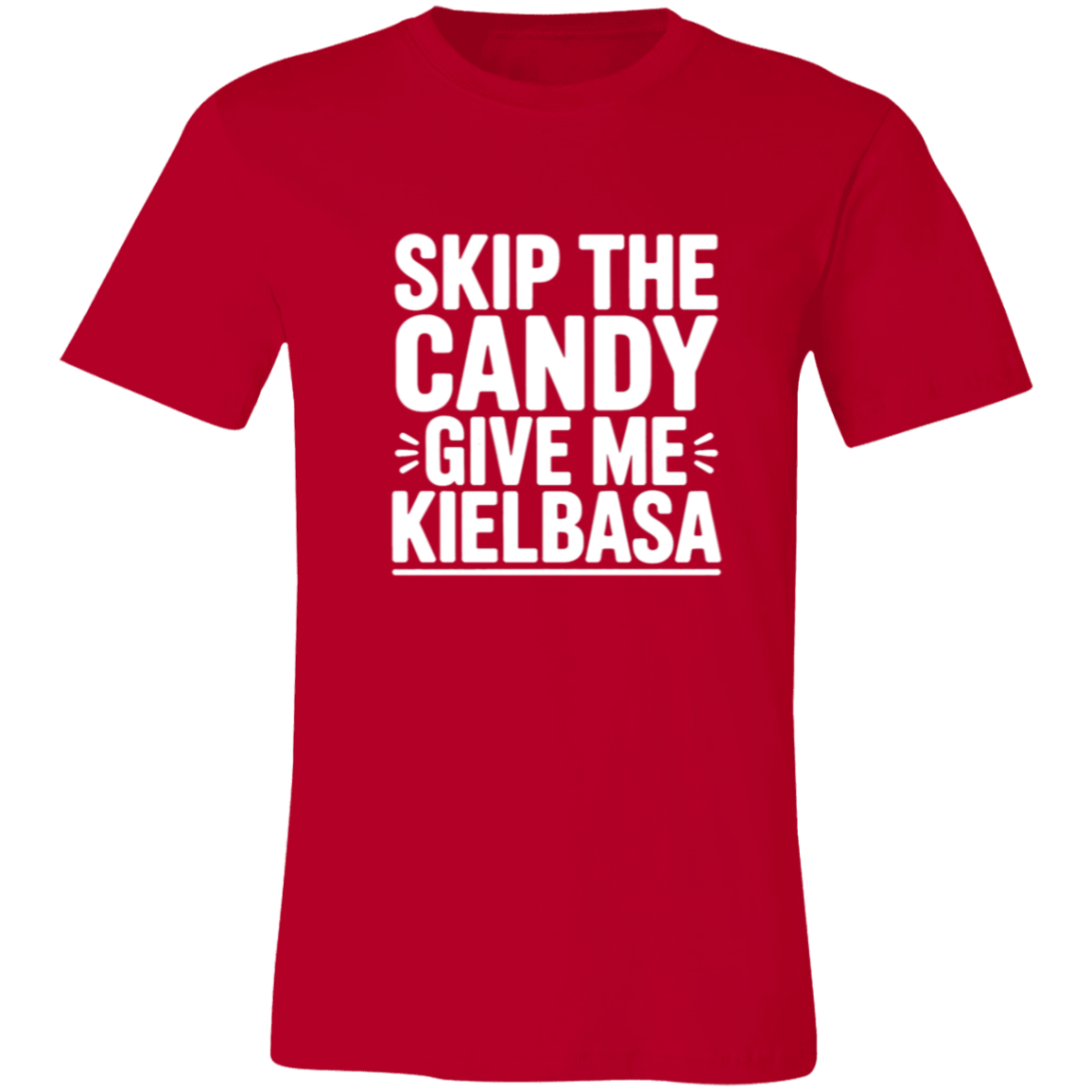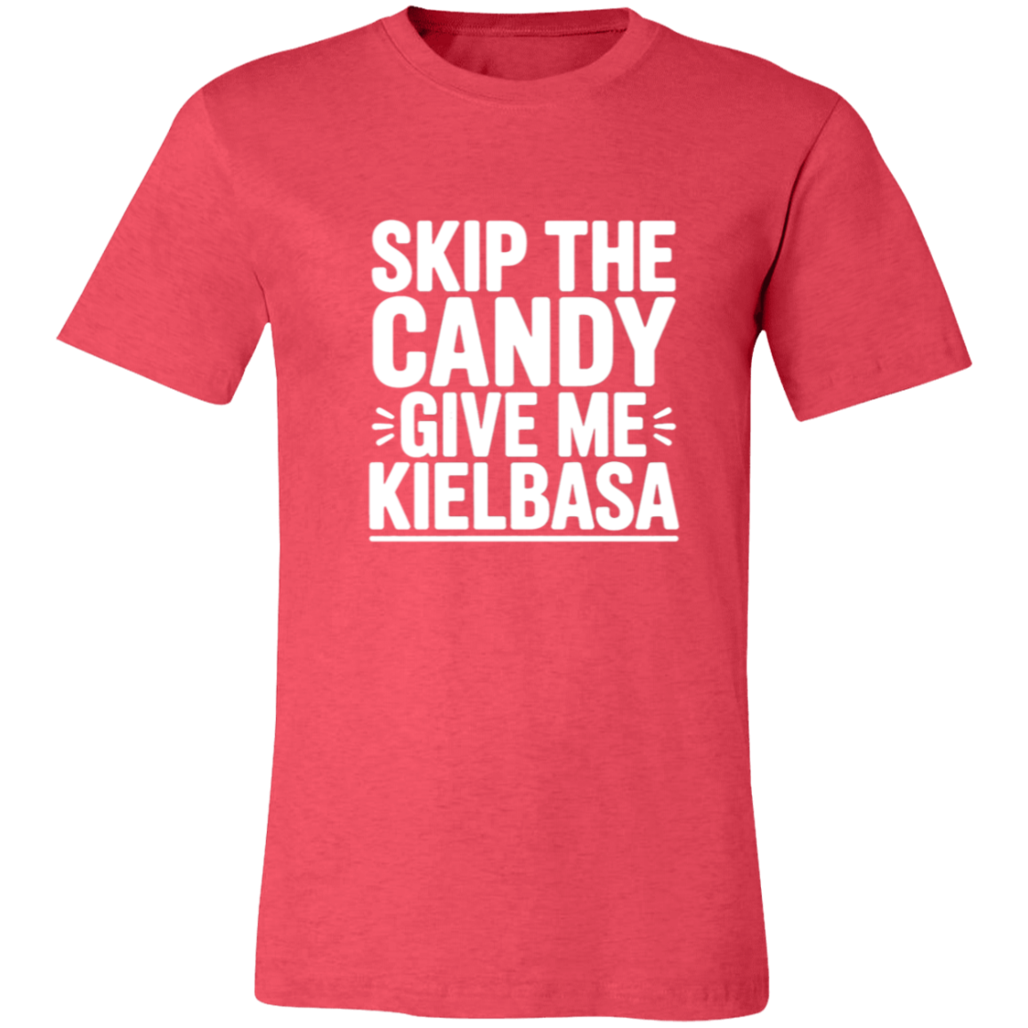 Celebrate your love for kielbasa with this playful women's t-shirt! Perfect for those who prefer savory treats over sweets, it’s a fun way to showcase your unique cravings. Made for comfort and everyday wear, this tee adds a quirky twist to your casual wardrobe. Skip the candy and make kielbasa your statement!