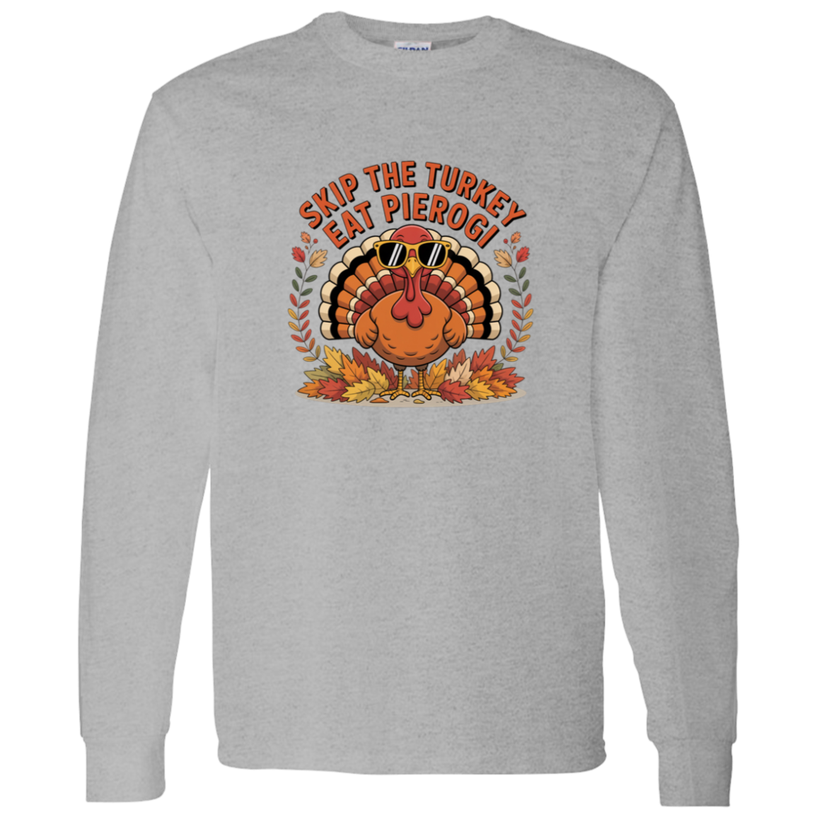 Trade tradition for flavor in the Skip The Turkey Eat Pierogi Long Sleeve. Ideal for cooler days, family dinners, or pierogi festivals, this playful shirt highlights love for Polish food and heritage in style.