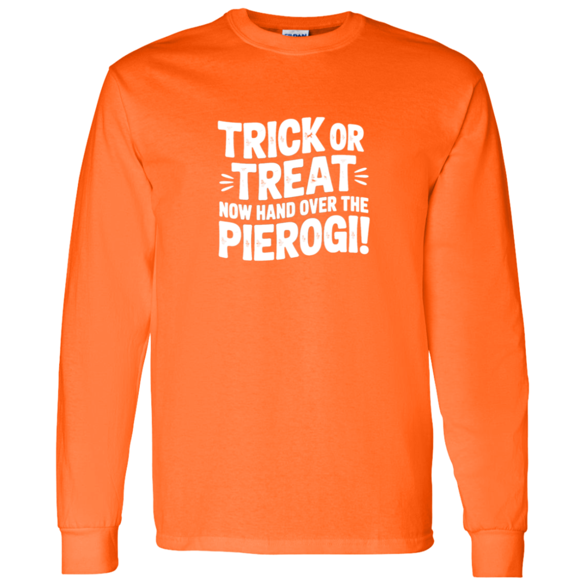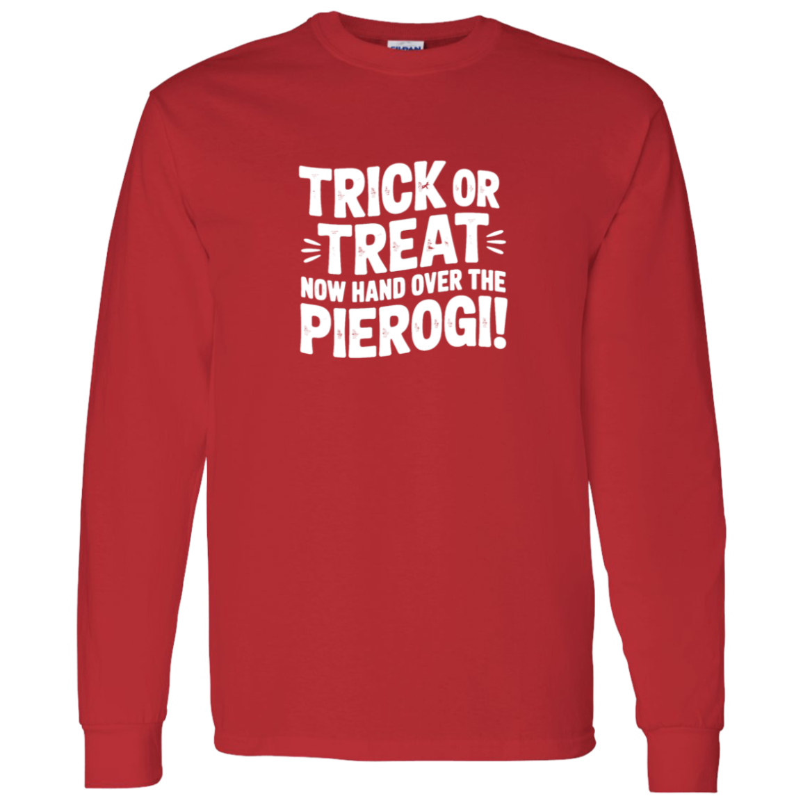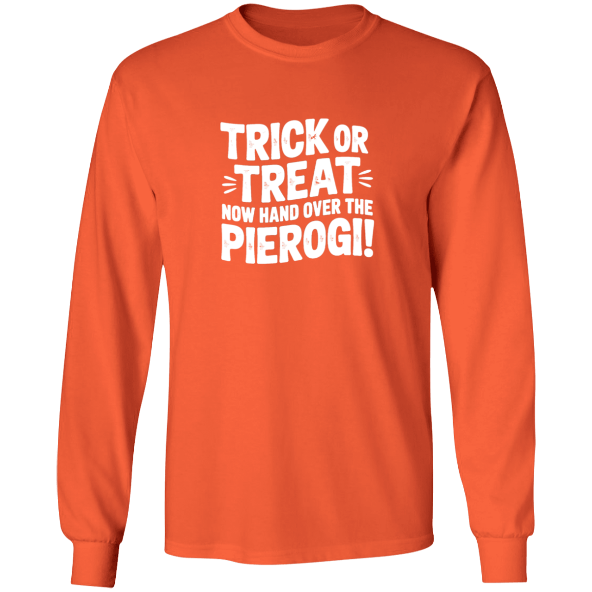 Stay cozy on spooky nights with the Trick Or Treat Now Hand Over The Pierogi Long Sleeve. A humorous Halloween pierogi shirt that’s great for October gatherings, trick-or-treating, and celebrating with a Polish twist.
