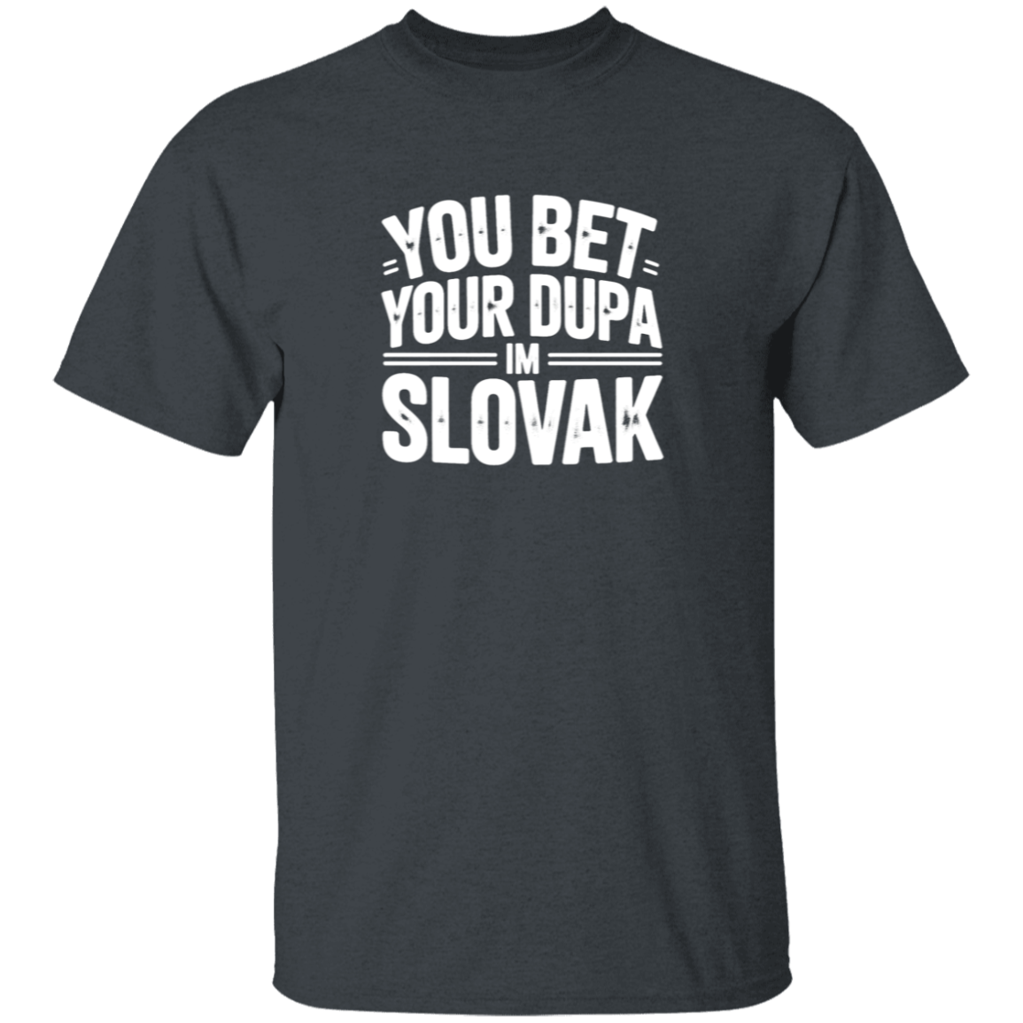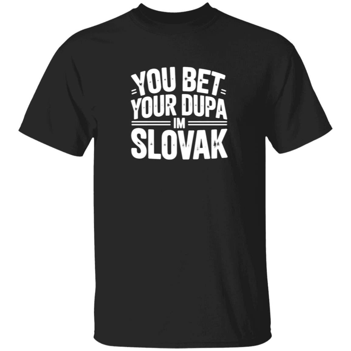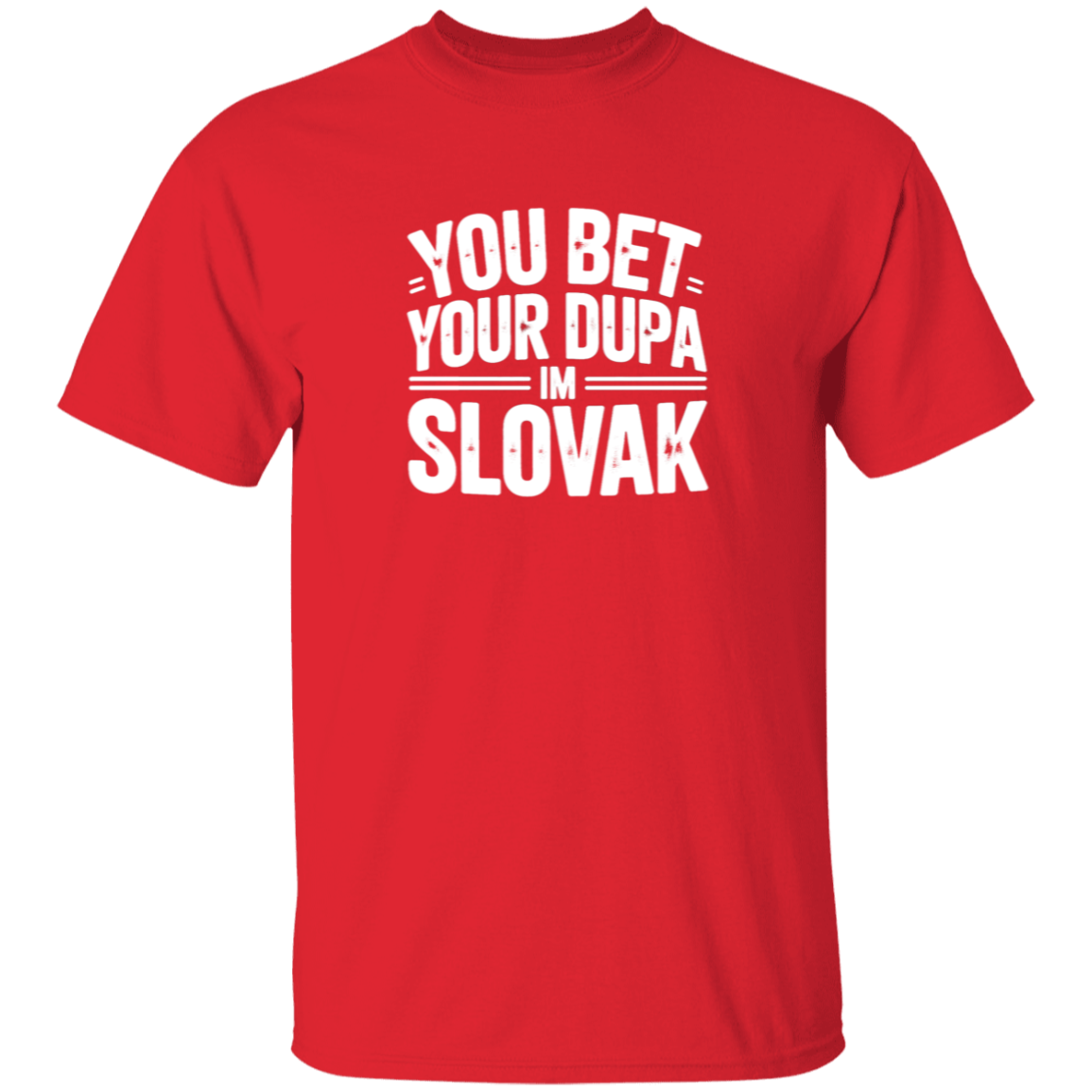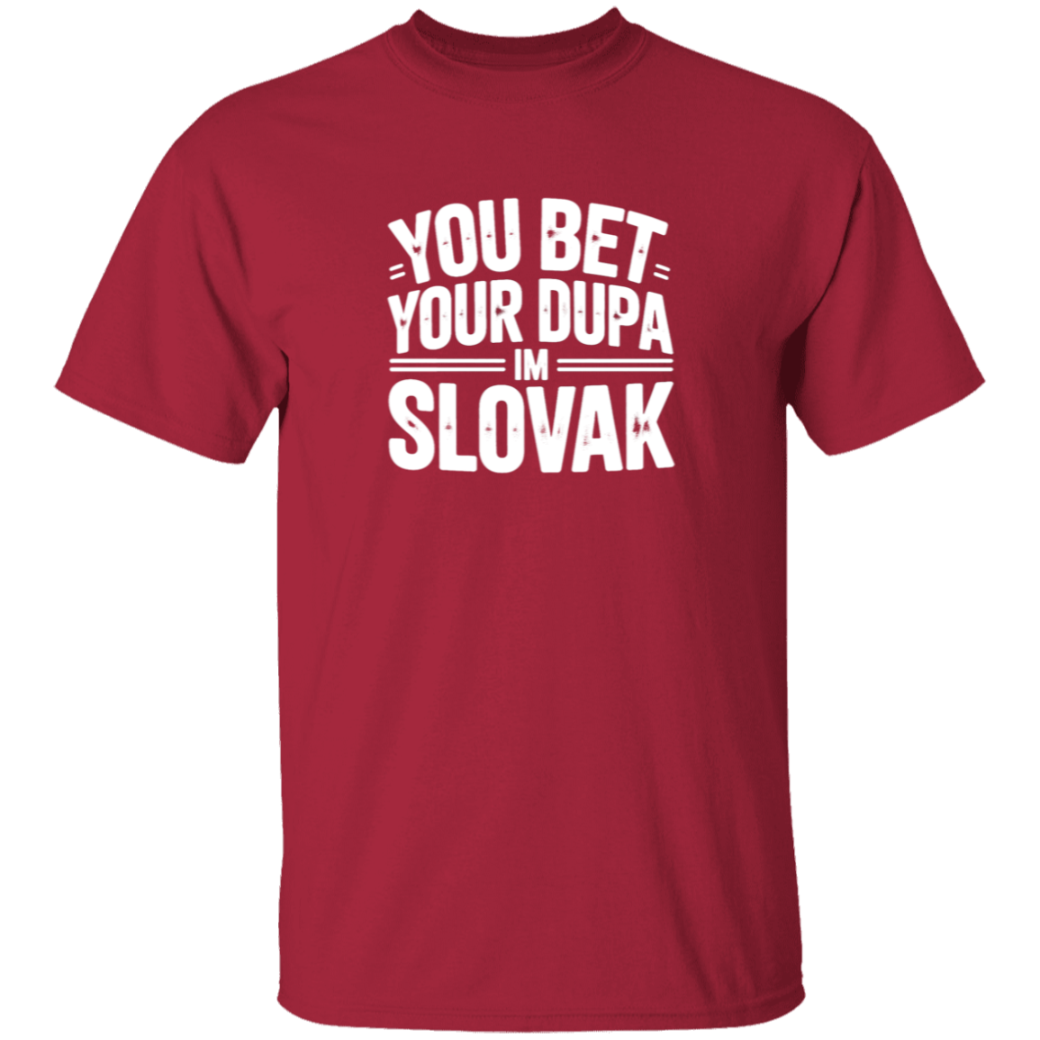 Show off your roots with the You Bet Your Dupa I’m Slovak T-Shirt. Perfect for family gatherings, cultural festivals, or casual wear, this funny heritage shirt celebrates Slovak pride with humor.