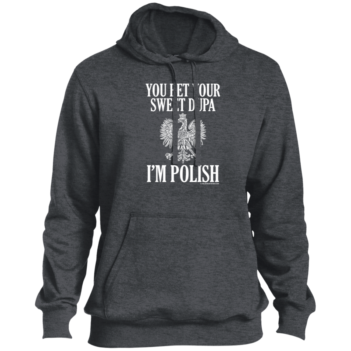 Show off your Polish pride with a fun twist in the "You Bet Your Sweet Dupa I'm Polish" Big & Tall Hoodie. Designed for comfort and bold statements, this hoodie combines cozy warmth with a cheeky phrase that’s sure to bring smiles. Perfect for casual outings or loungy days, it’s a playful way to celebrate your heritage in style.