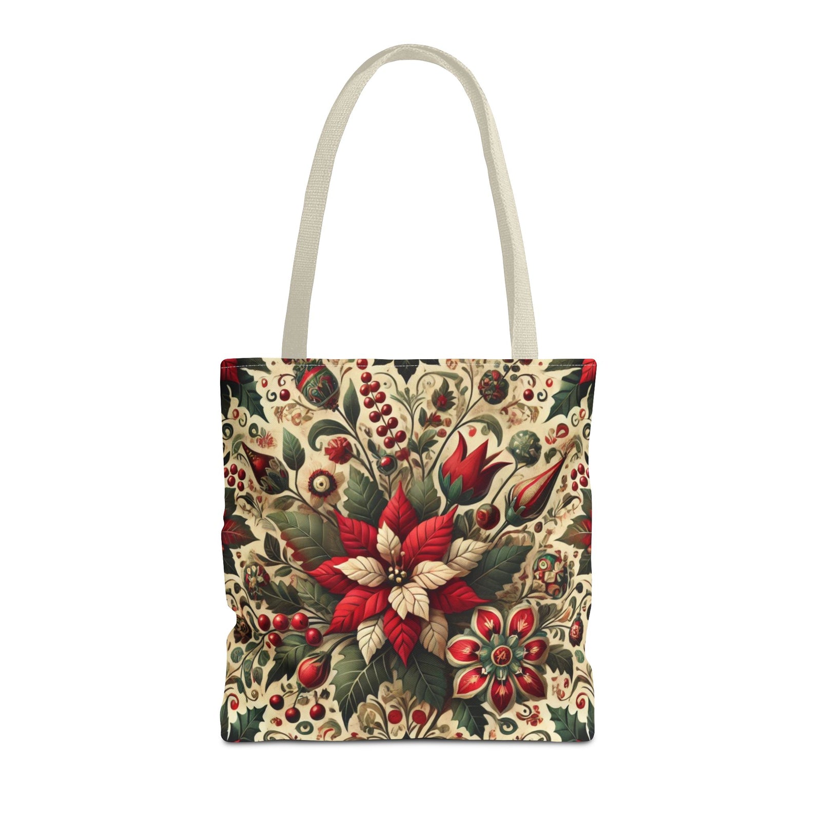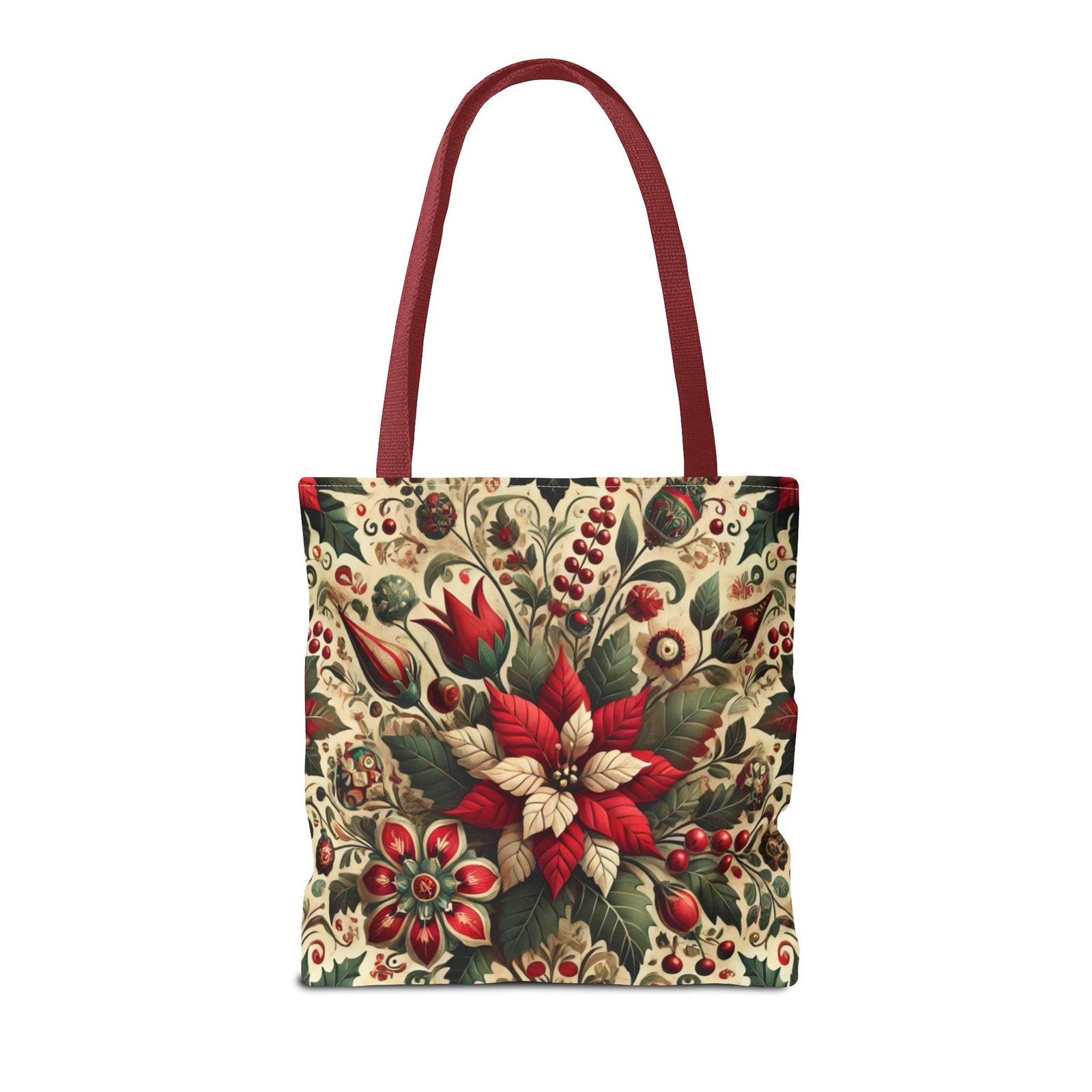Christmas Poinsettia Floral Art Holiday Tote Bag