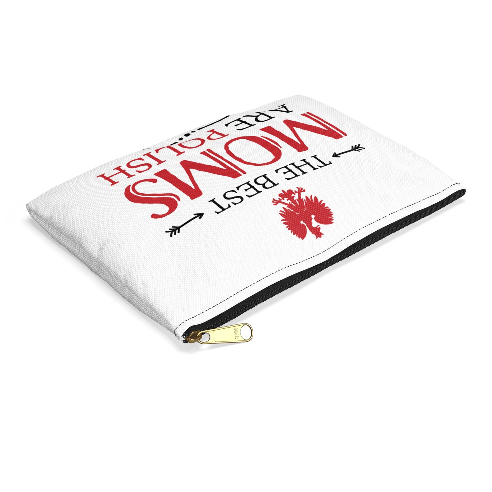 - Durable zipper closure with a stylish gold puller.