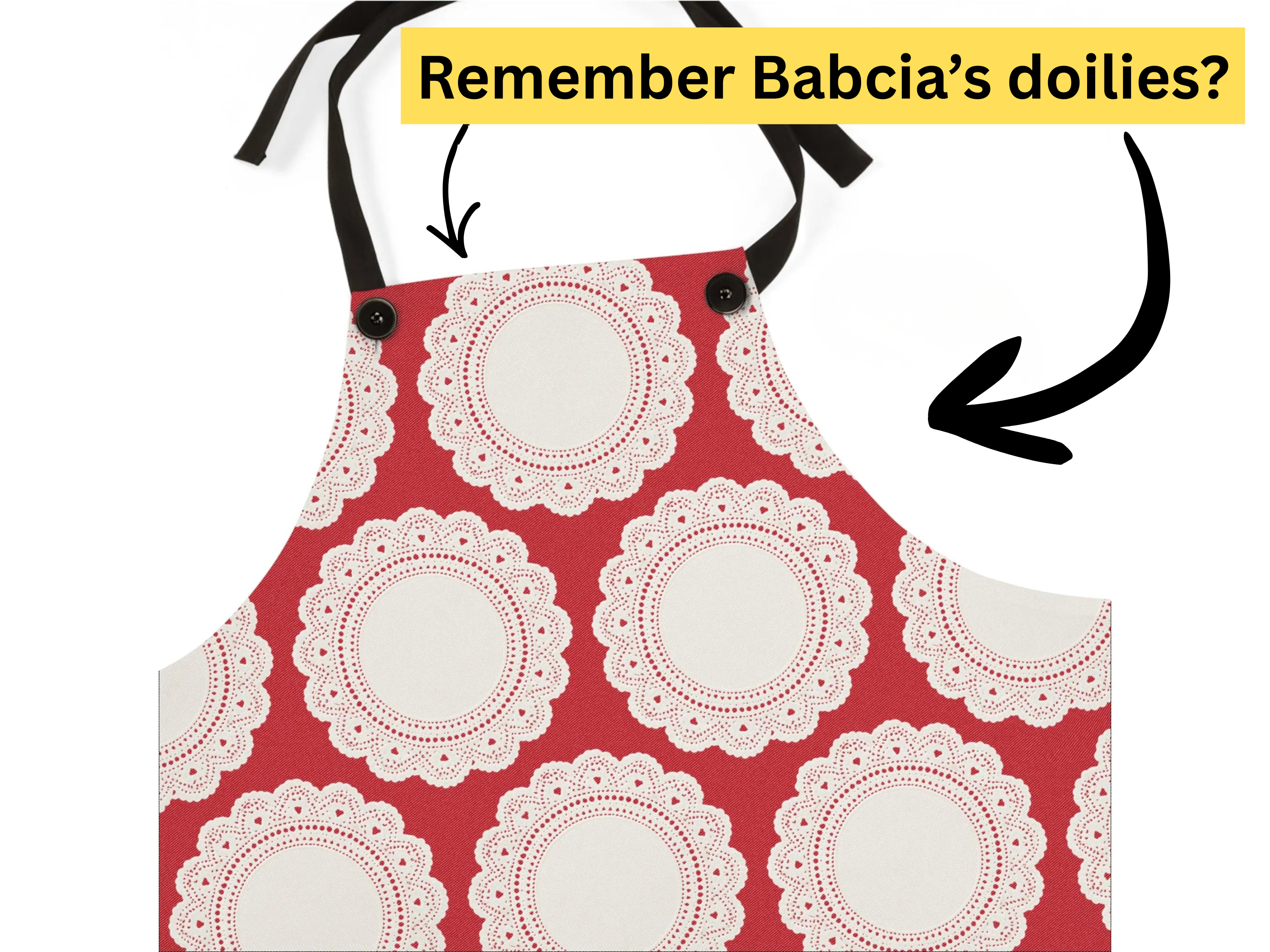 If you grew up in a Polish or Slavic household… you KNOW. 😂 My Babcia had lace doilies on EVERYTHING — on the TV, the coffee table, under the candy dish, under the holy pictures… sometimes under things that didn’t even need a doily. Why not on an apron?