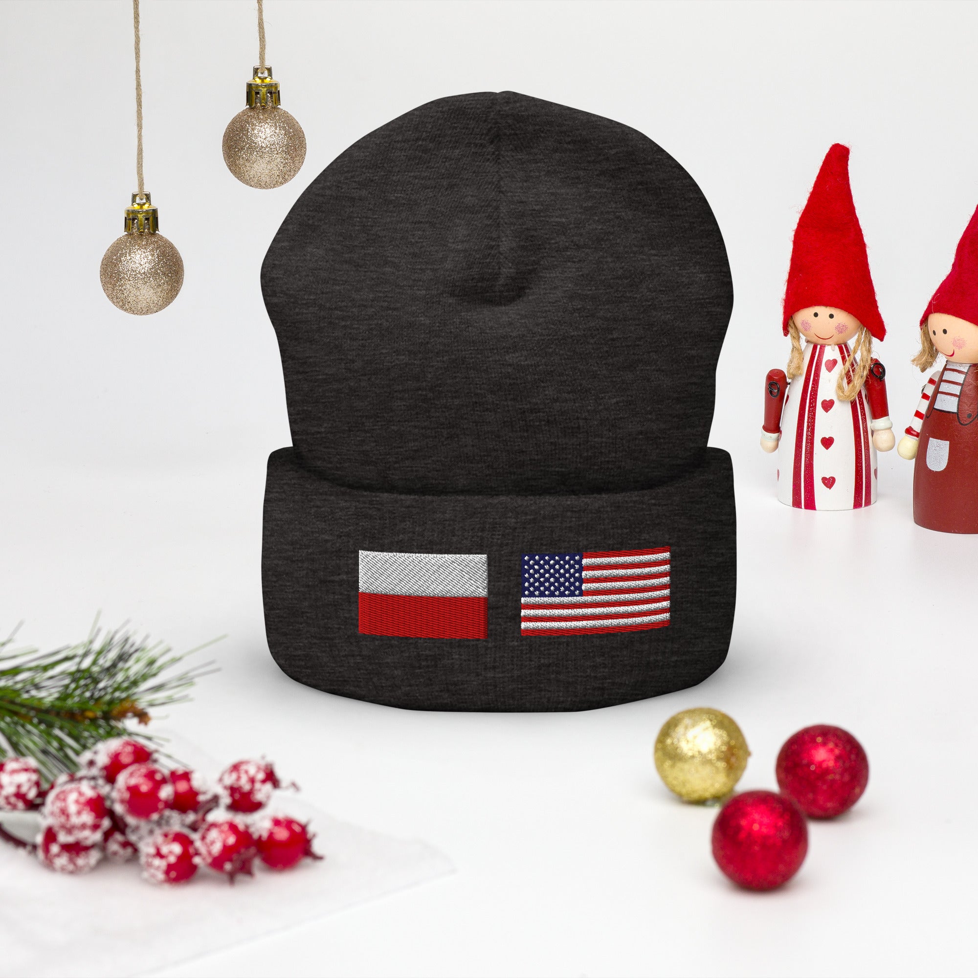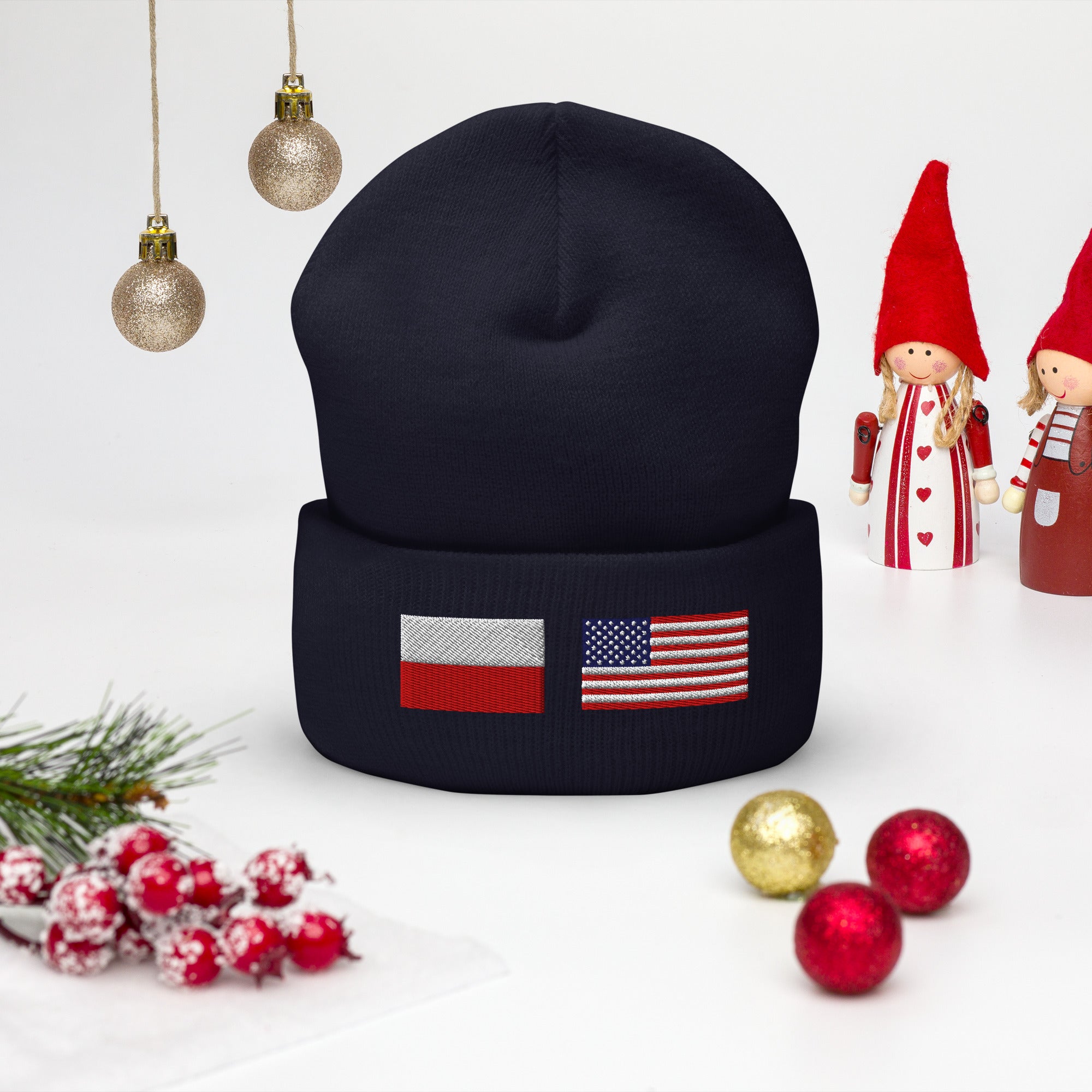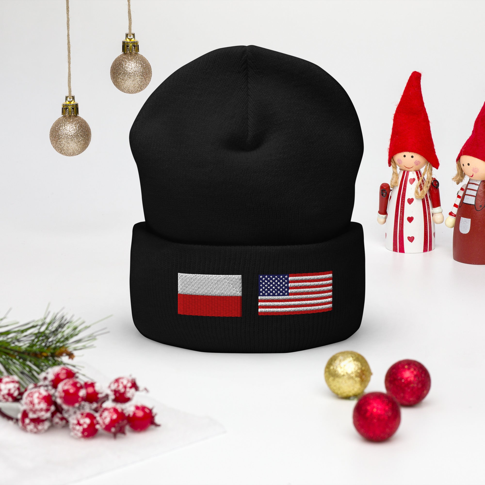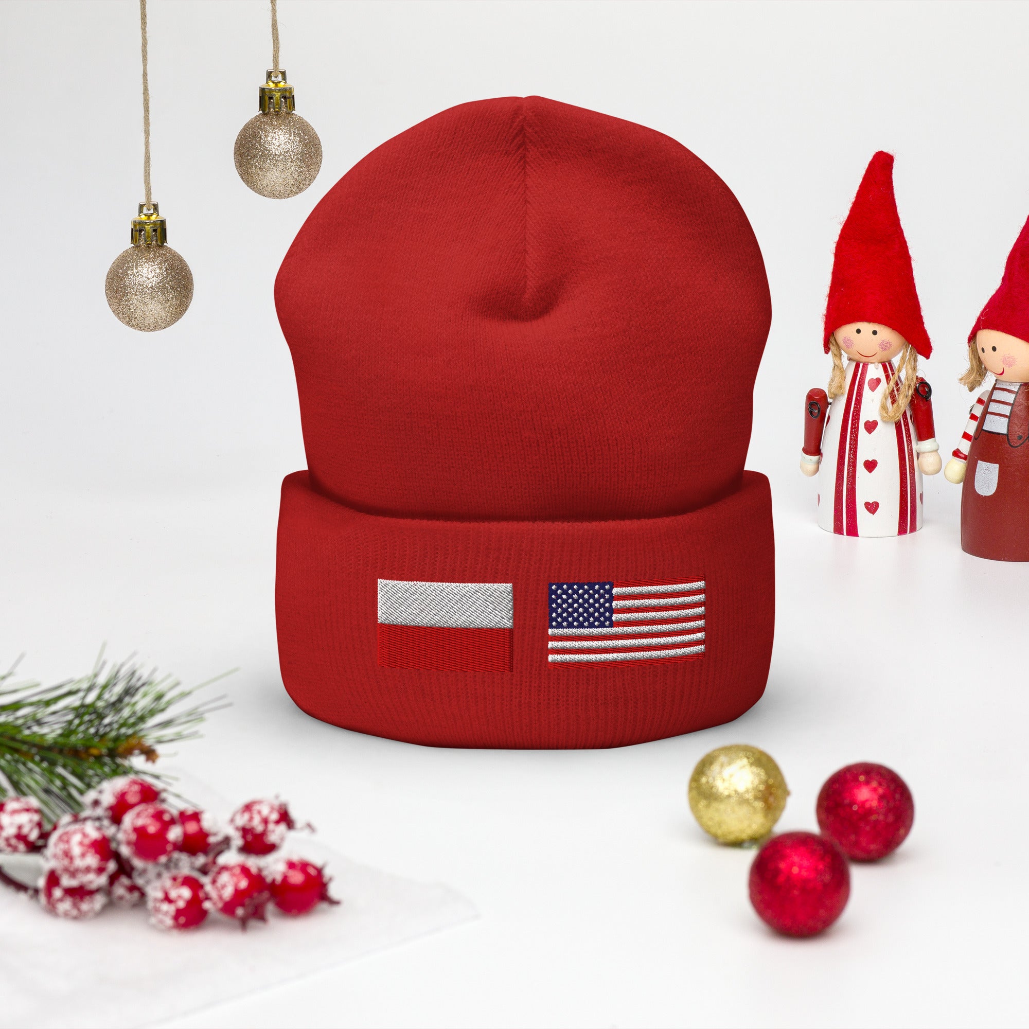 Polish American Flag Cuffed Beanie