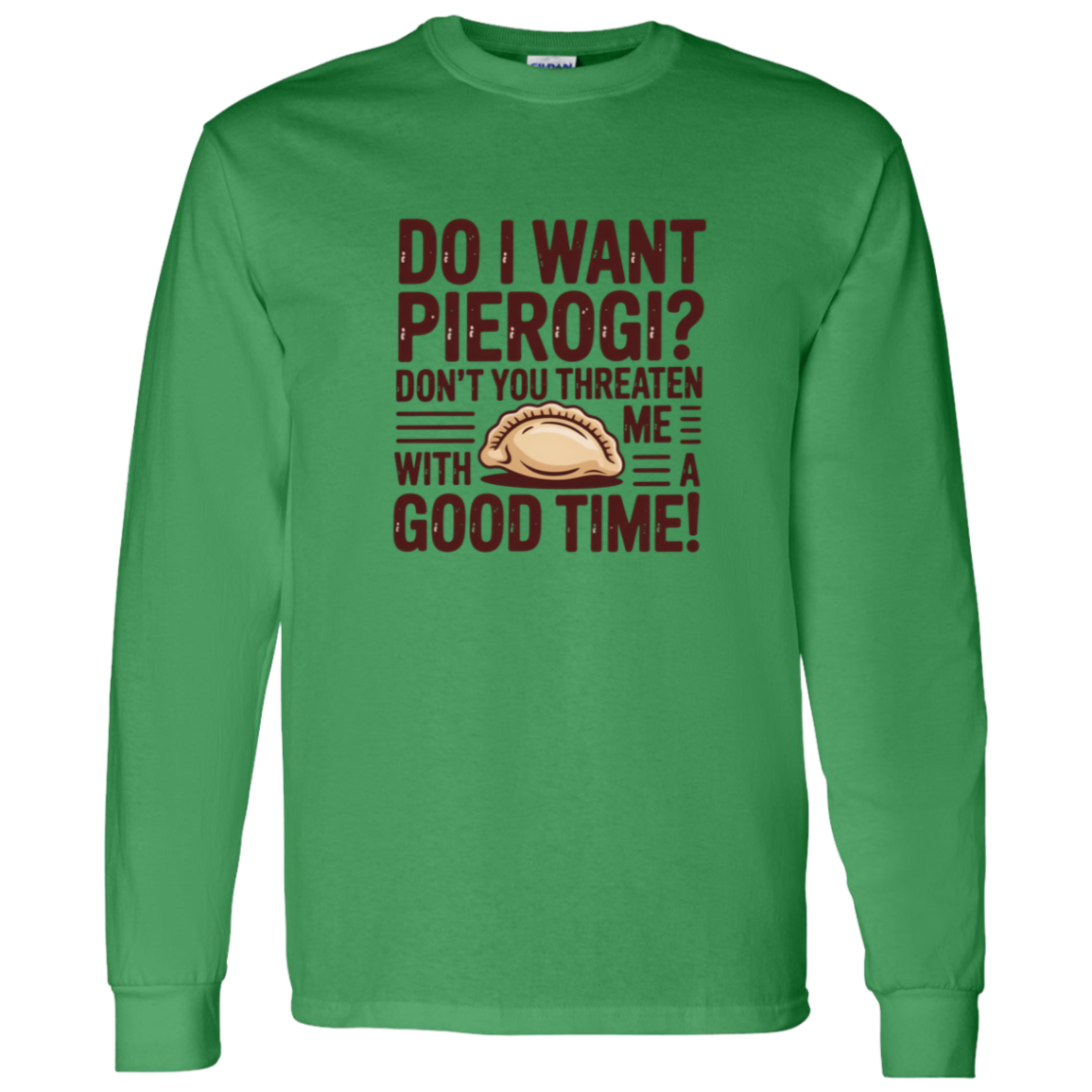 Show your love for Polish food with the Do I Want Pierogi Long Sleeve. This funny pierogi shirt adds humor and heritage to your wardrobe, perfect for family gatherings, Polish festivals, or casual everyday wear.