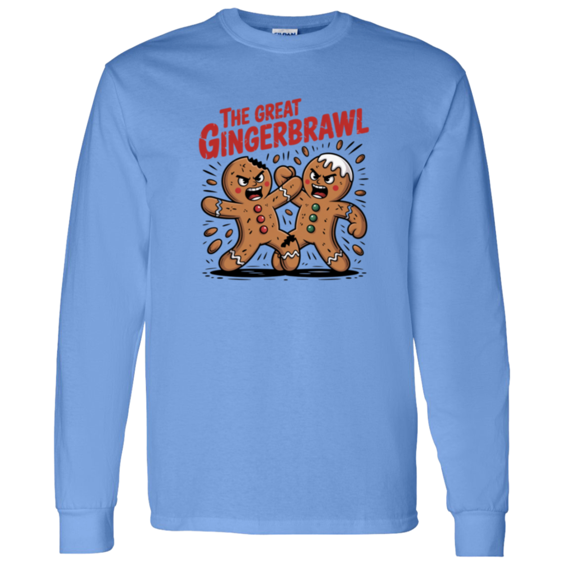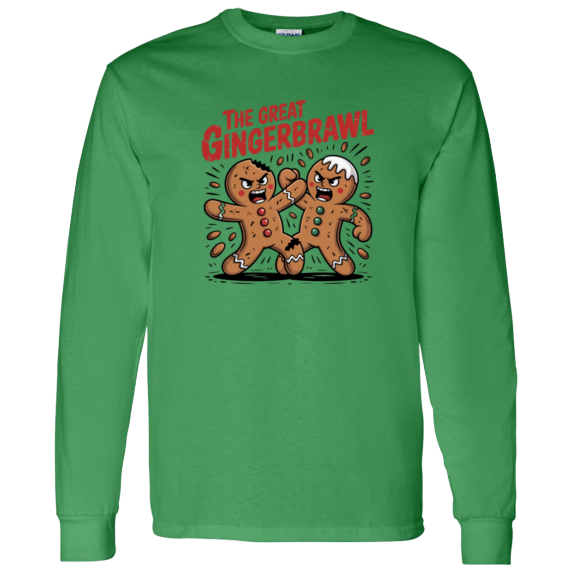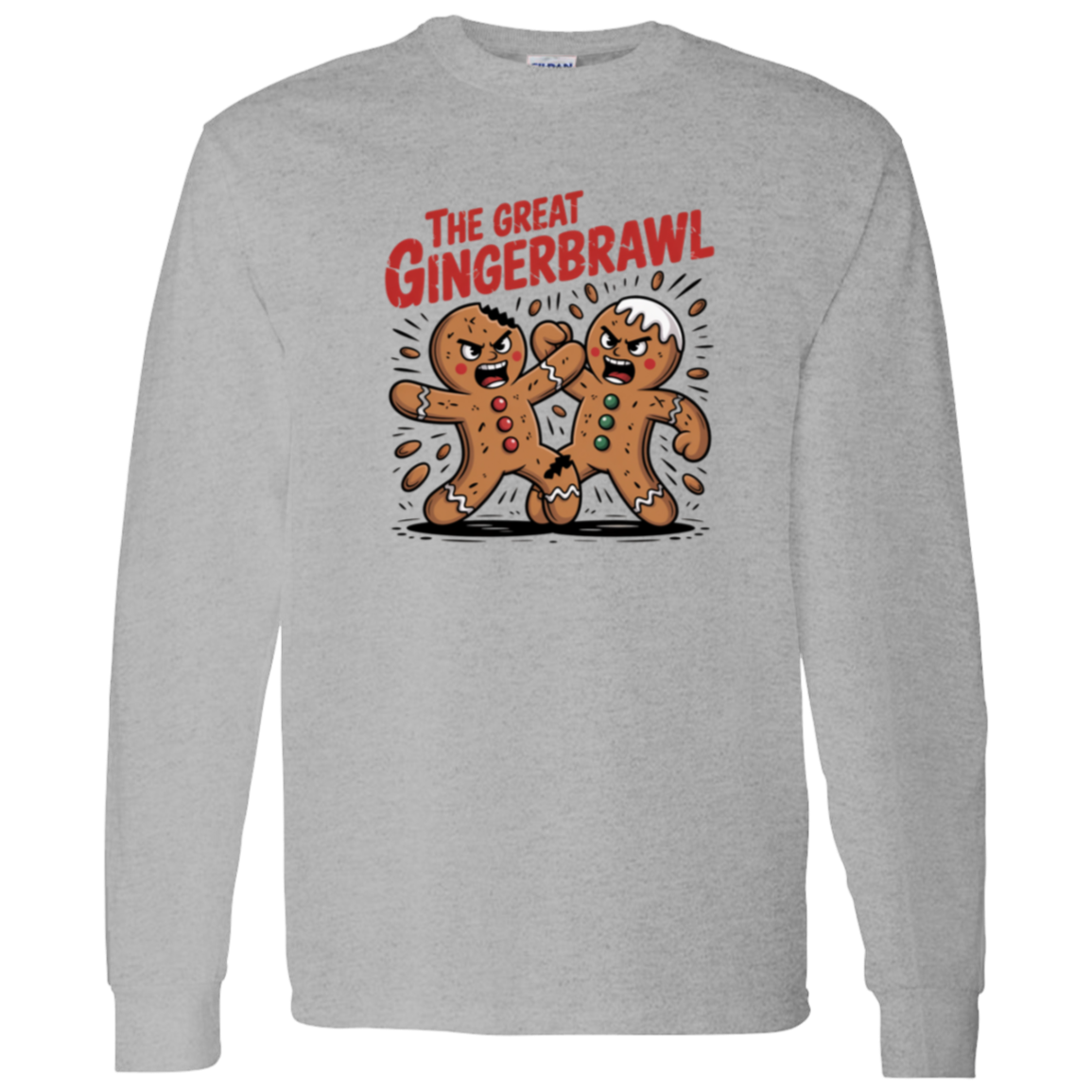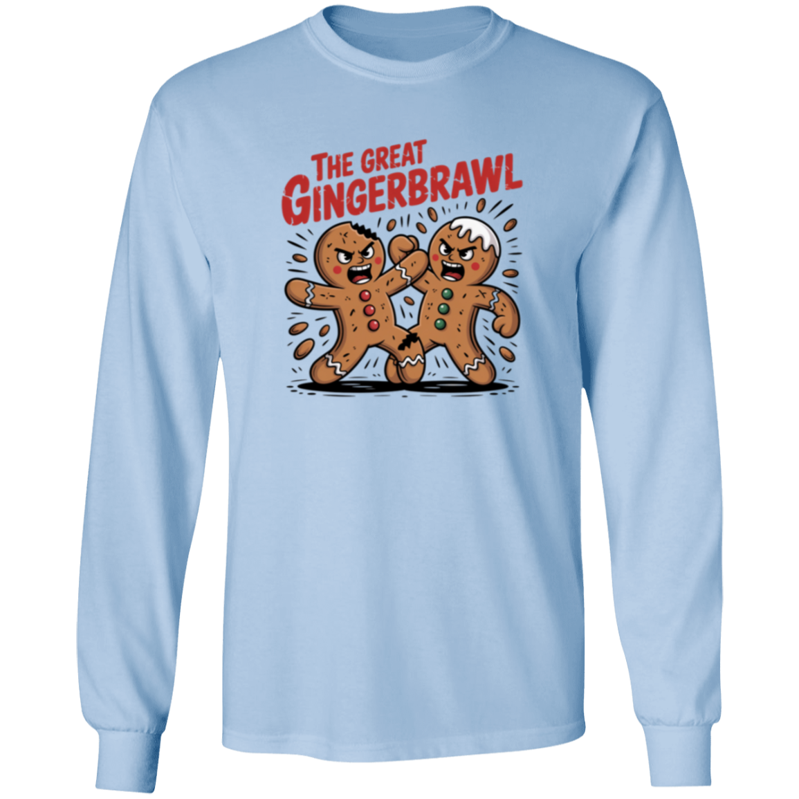 Bring holiday humor to your wardrobe with the Gingerbread Brawl Long Sleeve. This funny Christmas gingerbread shirt is perfect for the season, mixing festive style with playful charm. Great for holiday parties, family gatherings, or casual winter wear.