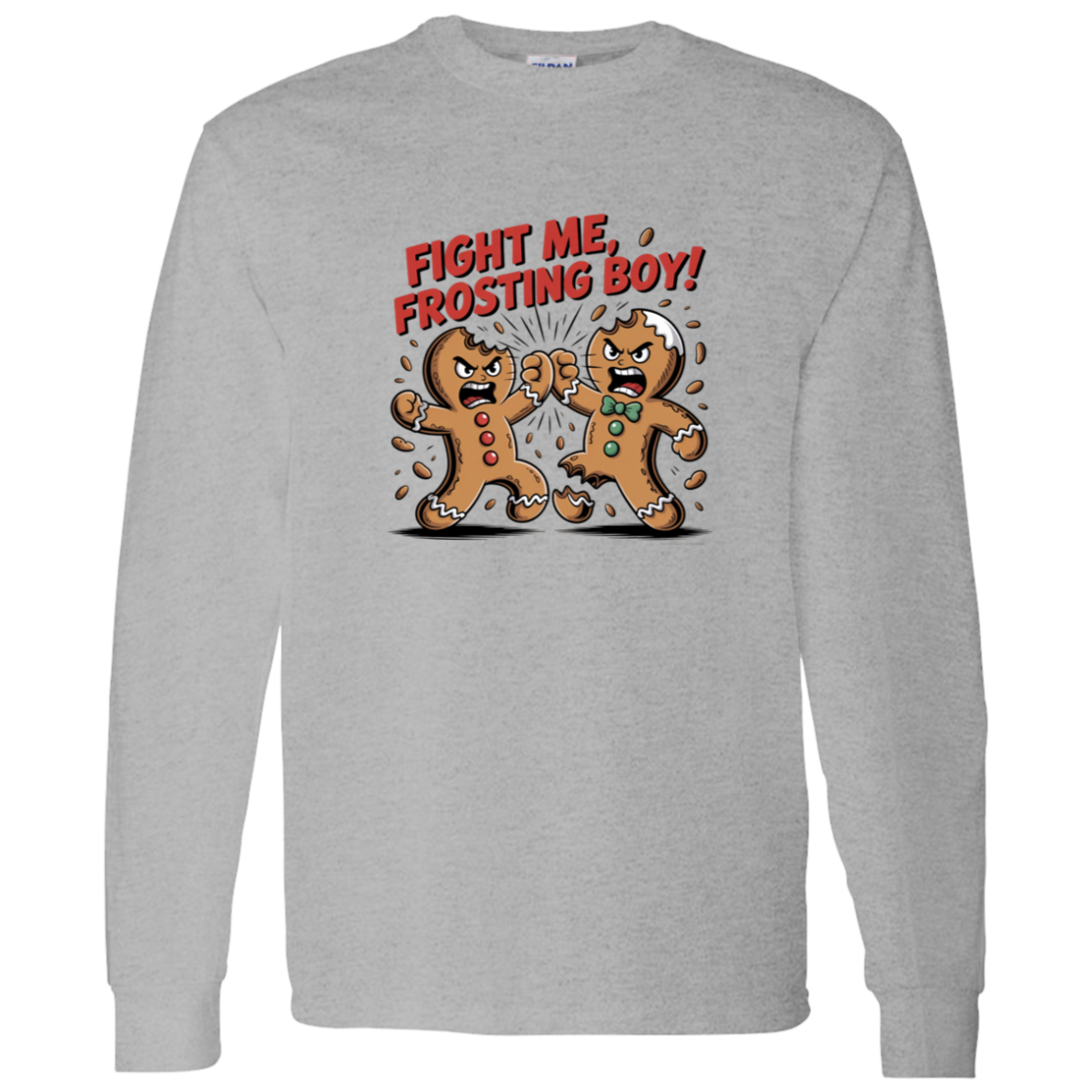 Step into holiday humor with the Gingerbread Fight Me Frosting Boy Long Sleeve. This funny Christmas gingerbread shirt adds a playful twist to festive style, great for winter gatherings, holiday parties, or casual seasonal wear.