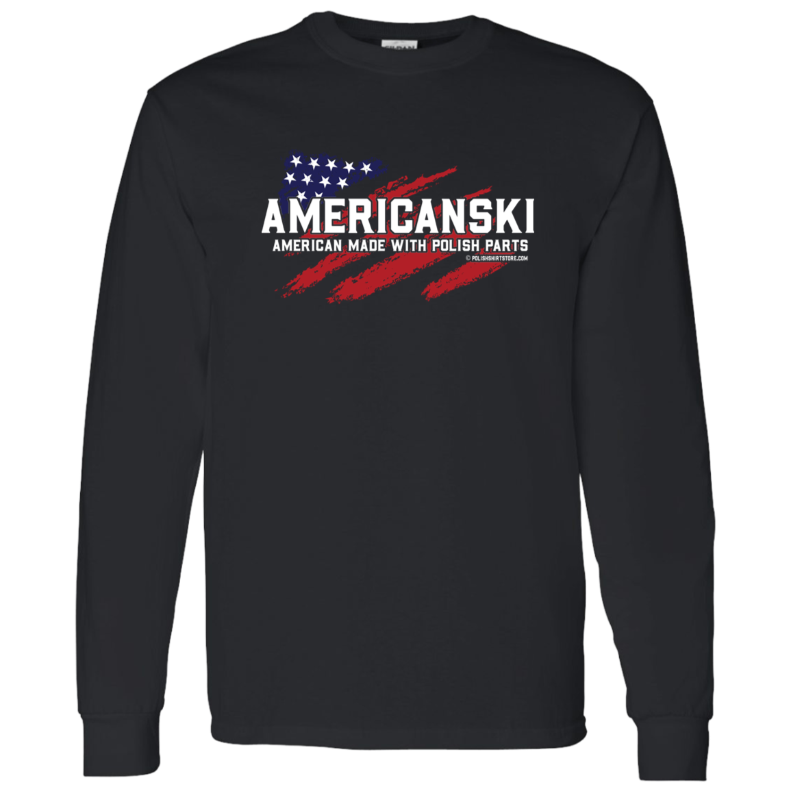 Show off your unique heritage with the Americanski American Made With Polish Parts Long Sleeve. Perfect for blending American spirit with Polish pride, this comfortable shirt keeps you cozy while turning heads. Its playful design makes it a great conversation starter and a lively addition to your casual wardrobe. Celebrate your roots with a wink and style that’s truly one of a kind.